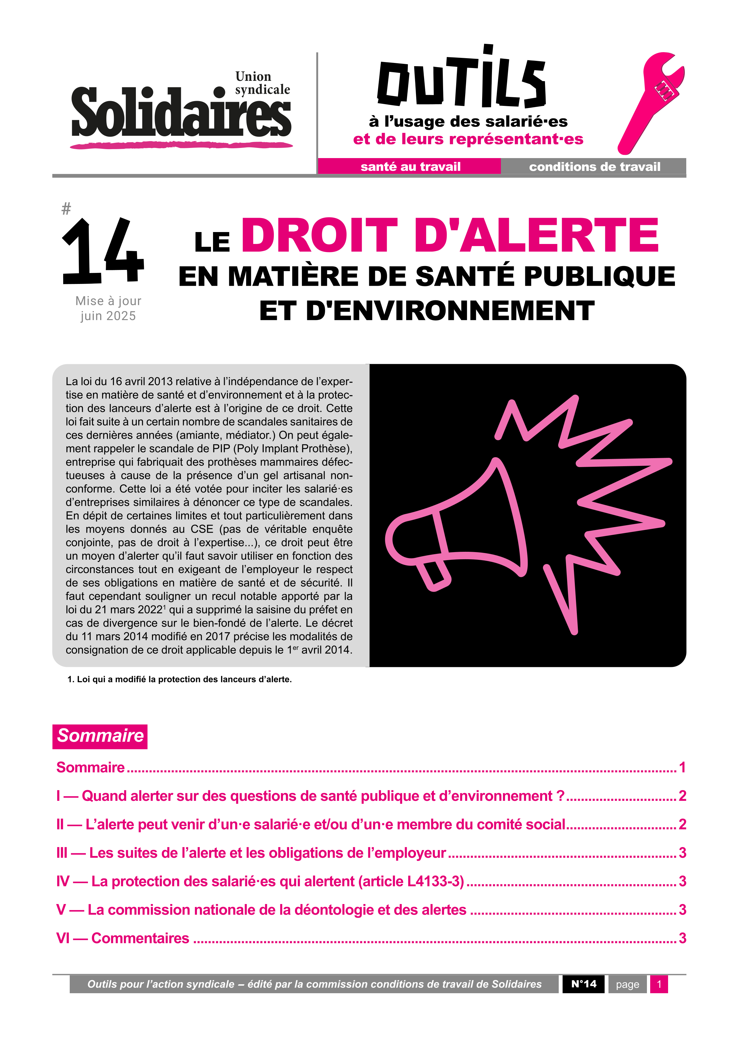 Fiche Outils n° 14 - Le droit d'alerte en matière de santé publique et d'environnement