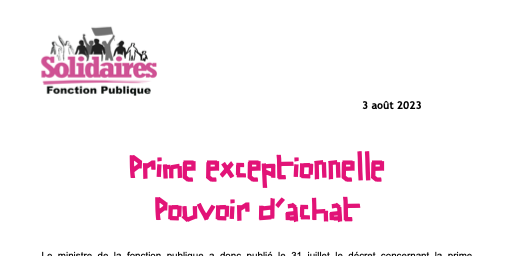 Le ministre de la fonction publique a donc publié le 31 juillet le décret concernant la prime exceptionnelle pouvoir d’achat pour les agent-es publics.