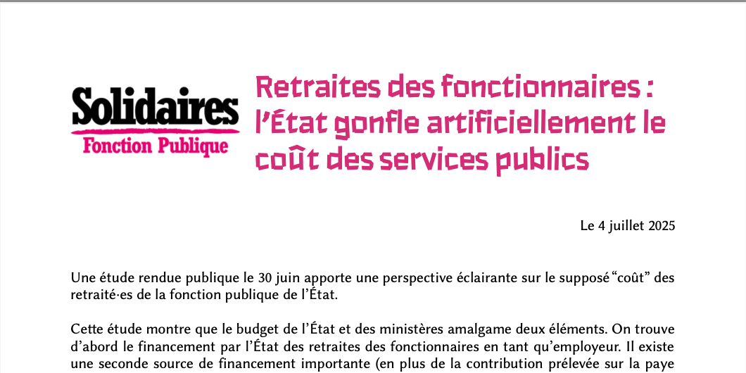 Une étude rendue publique le 30 juin apporte une perspective éclairante sur le supposé “coût” des retraité·es de la fonction publique de l’État.
