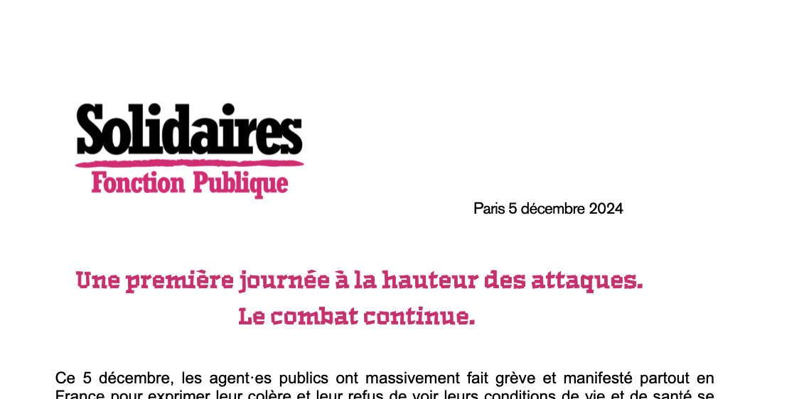 Ce 5 décembre, les agent·es publics ont massivement fait grève et manifesté partout en France pour exprimer leur colère et leur refus de voir leurs conditions de vie et de santé se dégrader.