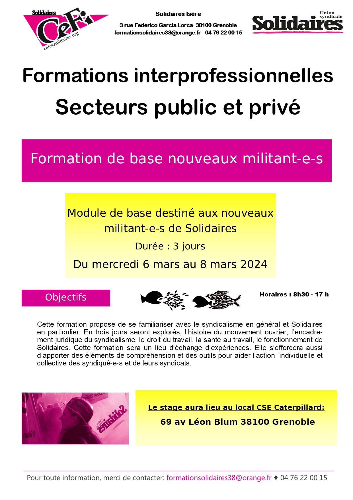 inscriptions par le mail de la com formation de Solidaires Isère : formationsolidaires38@orange.fr