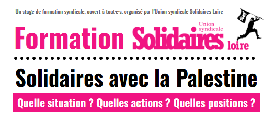 Afin de s'inscrire à la formation il faut: nous écrire à: stagepalestine.solidaires42@gmail.com Remplir ce framaform: https://framaforms.org/inscription-formulaire-1701942088/ Et envoyer une demande de congé de formation syndicale ( disponible sur le site de sud éducation loire) avant le 19 décembre 2023