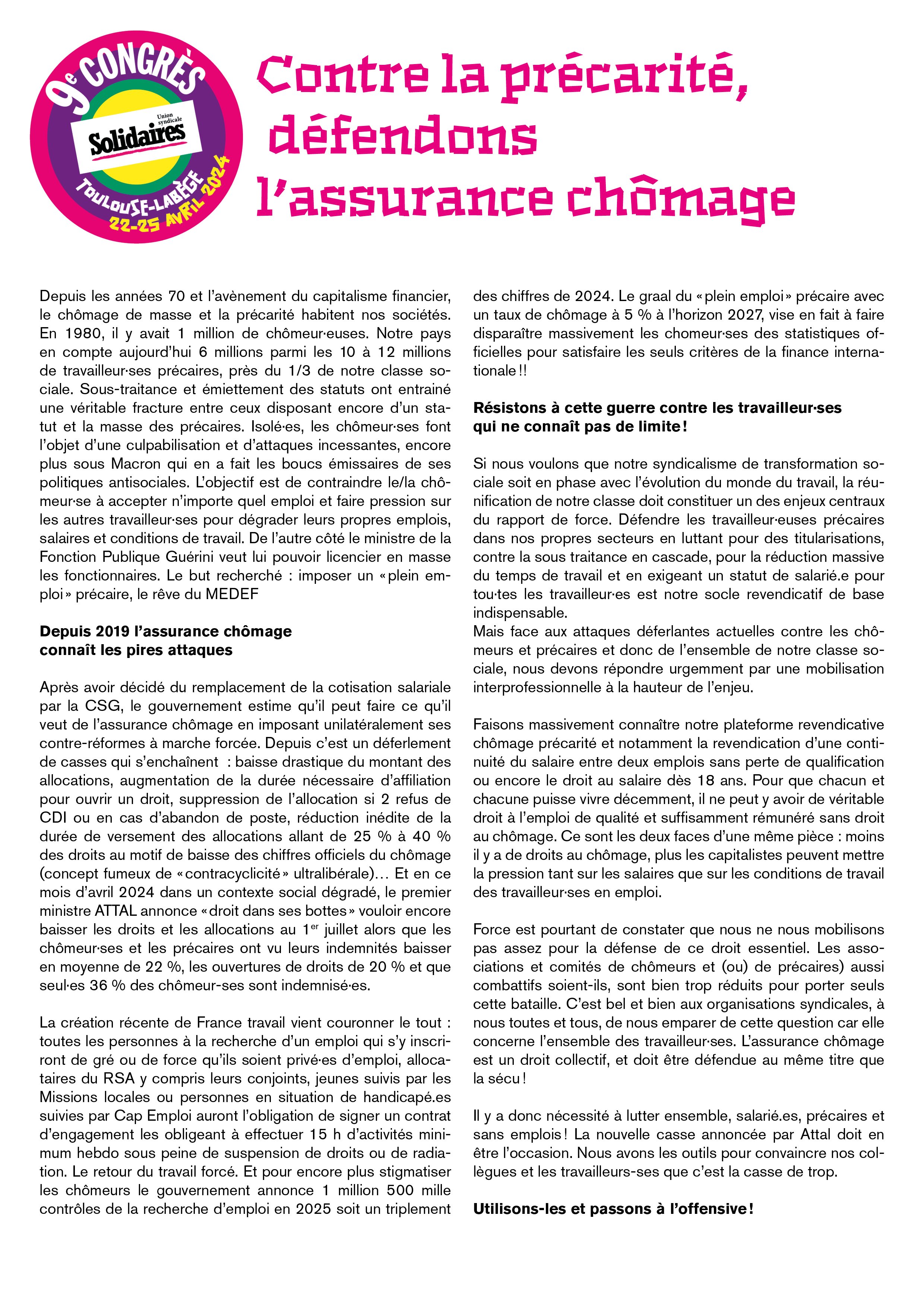 Il y a donc nécessité à lutter ensemble, salarié.es, précaires et sans emplois ! La nouvelle casse annoncée par Attal doit en être l’occasion. Nous avons les outils pour convaincre nos collègues et les travailleurs-ses que c’est la casse de trop.
