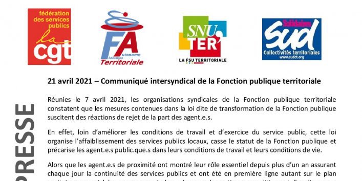 21 avril 2021 – Communiqué intersyndical de la Fonction publique territoriale
