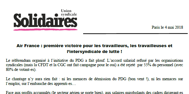 Air France : première victoire pour les travailleurs, les travailleuses et l’intersyndicale de lutte !