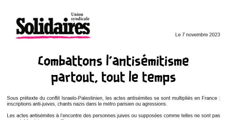 Solidaires réitère son engagement total contre toutes les haines, tous les racismes, toutes les discriminations.