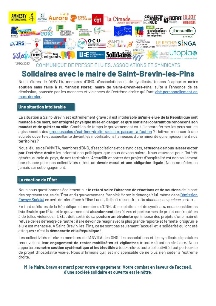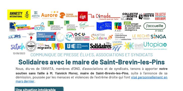 COMMUNIQUÉ DE PRESSE élu-es, associations, Syndicats : Solidaires avec le maire de Saint-Brevin-les-Pins