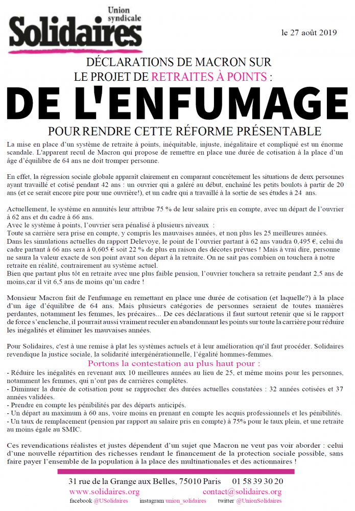 Déclarations de Macron sur le projet de retraites à points : de l'enfumage pour rendre cette réforme présentable