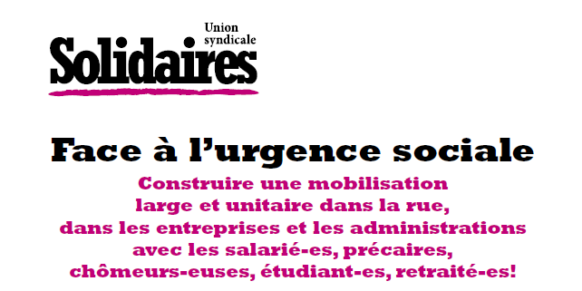 Dans l'immédiat l'Union syndicale Solidaires appelle :