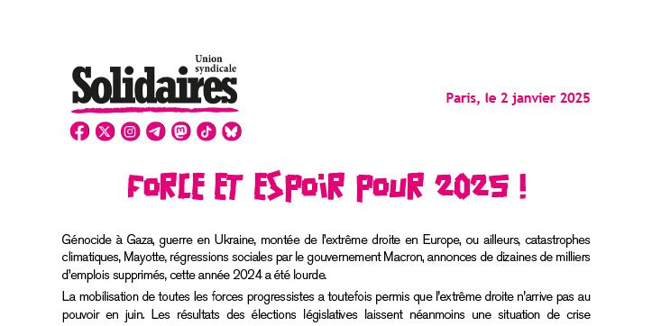 Pour que 2025 soit une année de victoires, de confiance dans notre capacite collective à lutter, gagner, pour une réelle transformation sociale !