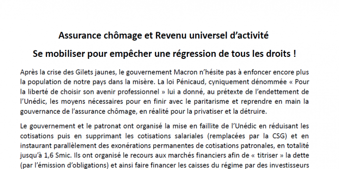 Tract unitaire "Assurance chômage et Revenu universel d’activité : Se mobiliser pour empêcher une régression de tous les droits !"
