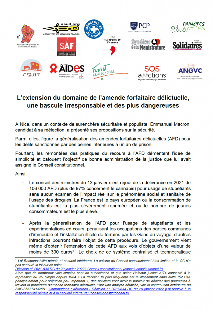L’extension du domaine de l’amende forfaitaire délictuelle, une bascule irresponsable et des plus dangereuses