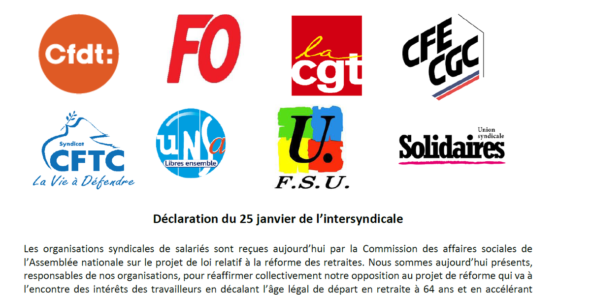 (Réforme des retraites) Déclaration du 25 janvier 2023 de l’intersyndicale nationale