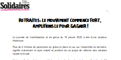 L’Union syndicale Solidaires est mobilisée et déterminée à faire retirer ce projet de réforme. Notre force est visible, amplifions le mouvement pour gagner !