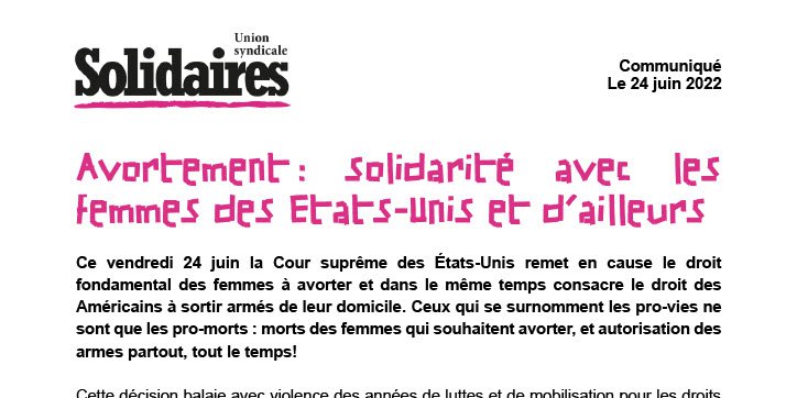 Avortement : solidarité avec les femmes des Etats-Unis et d’ailleurs