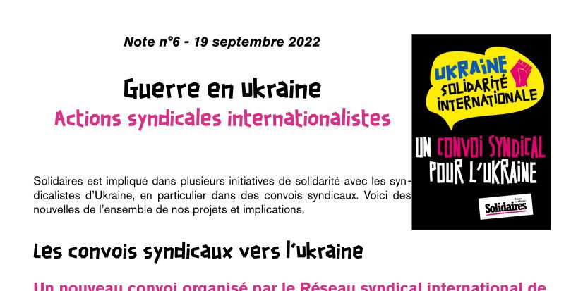 Note n°6 - Guerre en Ukraine : actions syndicales internationalistes