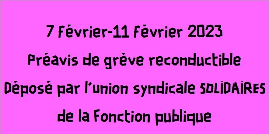 7 février-11 février 2023 Préavis de grève reconductible Déposé par l’Union syndicale SOLIDAIRES de la Fonction publique