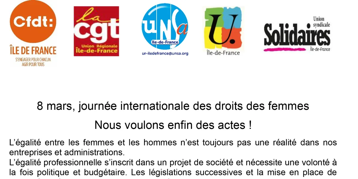 8 mars, journée internationale des droits des femmes. Nous voulons enfin des actes !