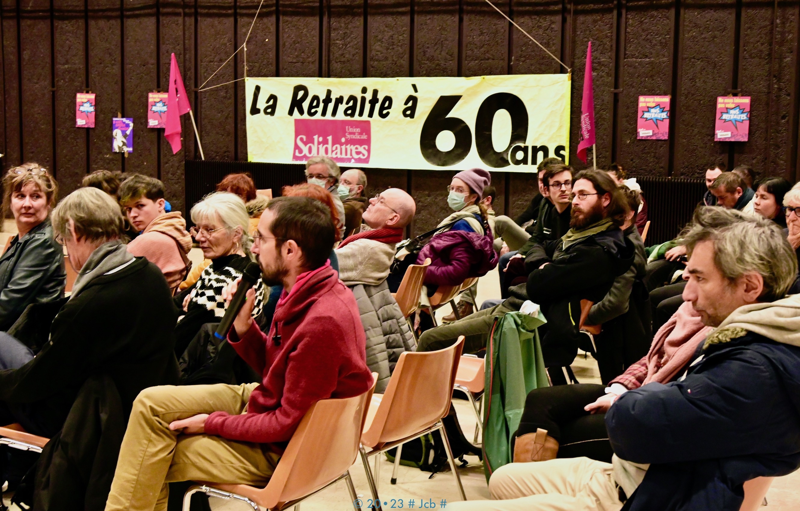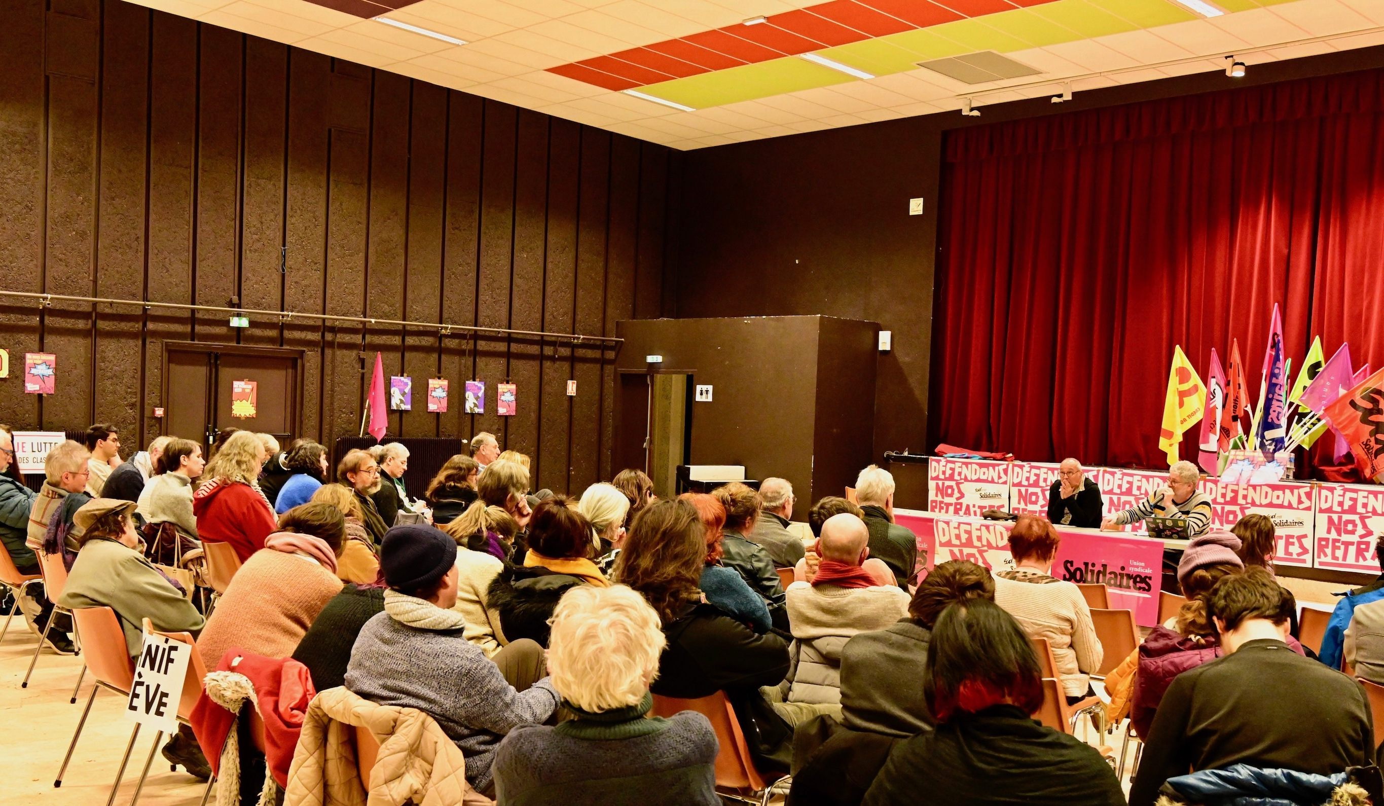 Le vendredi 20 janvier l’Union Syndicale Solidaires Auvergne organisait une réunion publique à la maison du peuple pour évoquer la réforme des retraites, une centaine de personnes était présente.