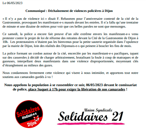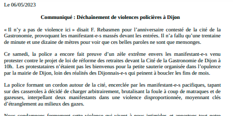 Communiqué : Déchaînement de violences policières à Dijon