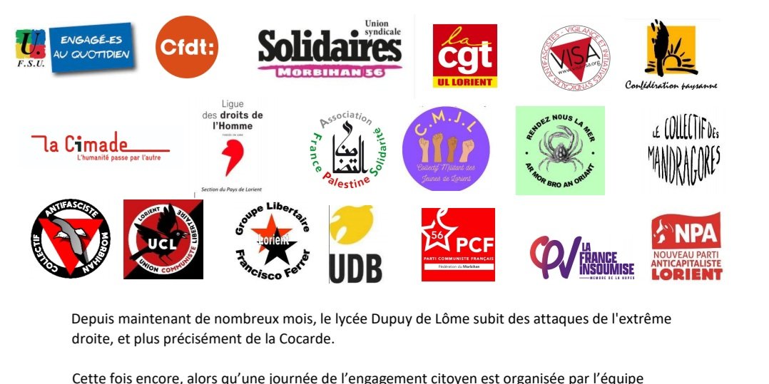 Communiqué inter-orga du Morbihan: Nouvelles menaces d’extrême droite à Lorient