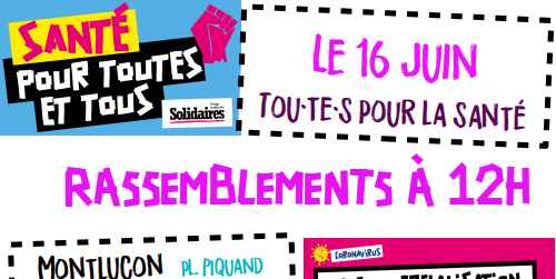 Le mardi 16 juin toutes et tous mobilisé-es pour la santé