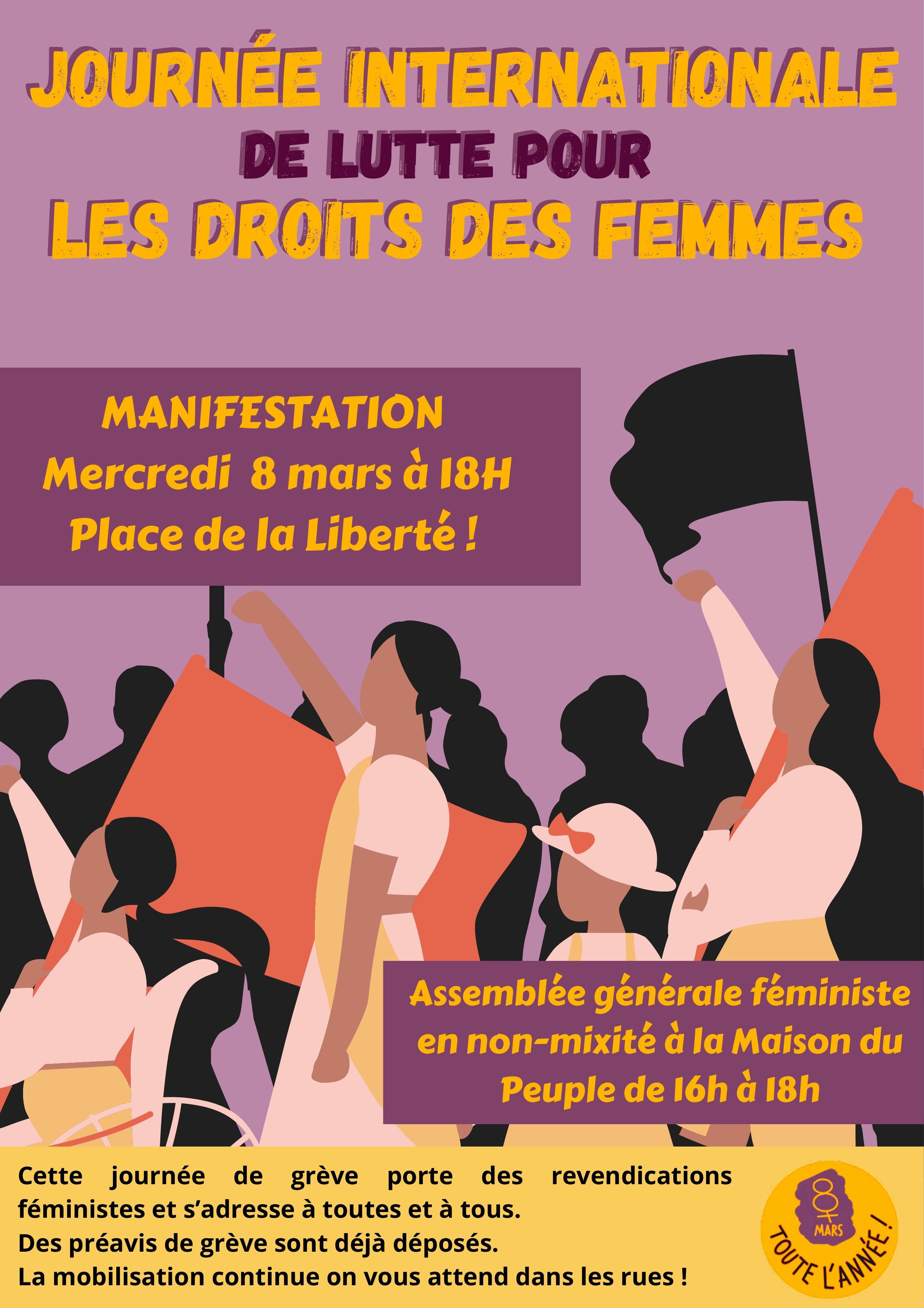 - 16h : Assemblée Générale féministe en non-mixité aura lieu à la Maison du Peuple