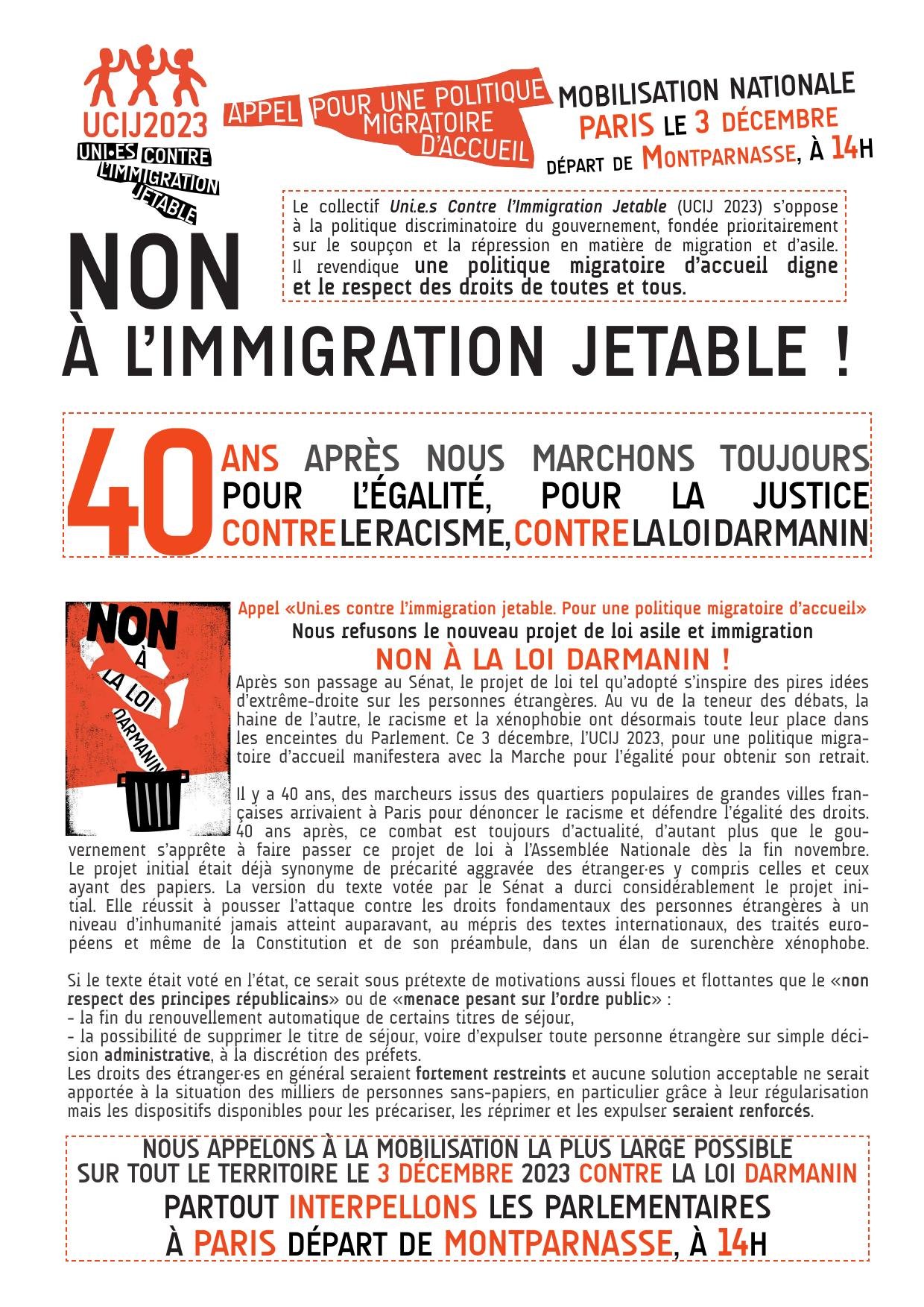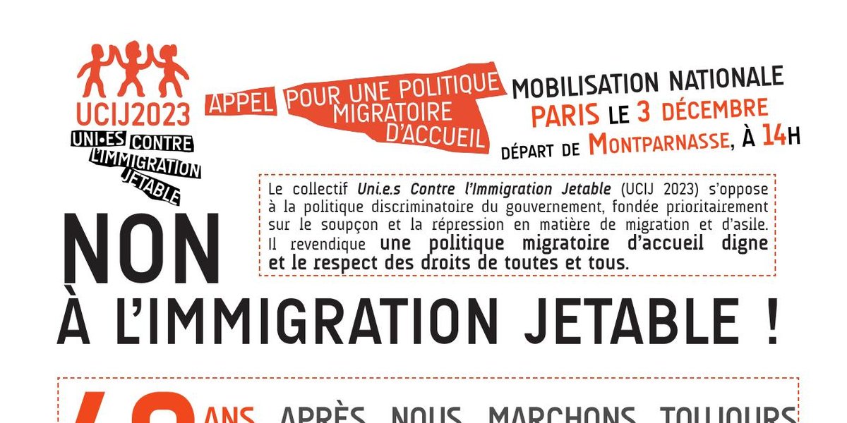 Lundi 11 décembre des manifestations et rassemblements se dérouleront dans toute la France à l'appel du collectif Unis Contre une Immigration Jetable (UCIJ).