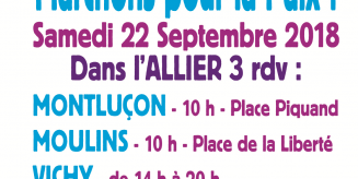 Marche pour la paix le 22 septembre à Montluçon, Vichy et Moulins. Pour les rendez-vous, voir l'affiche ci-dessous :