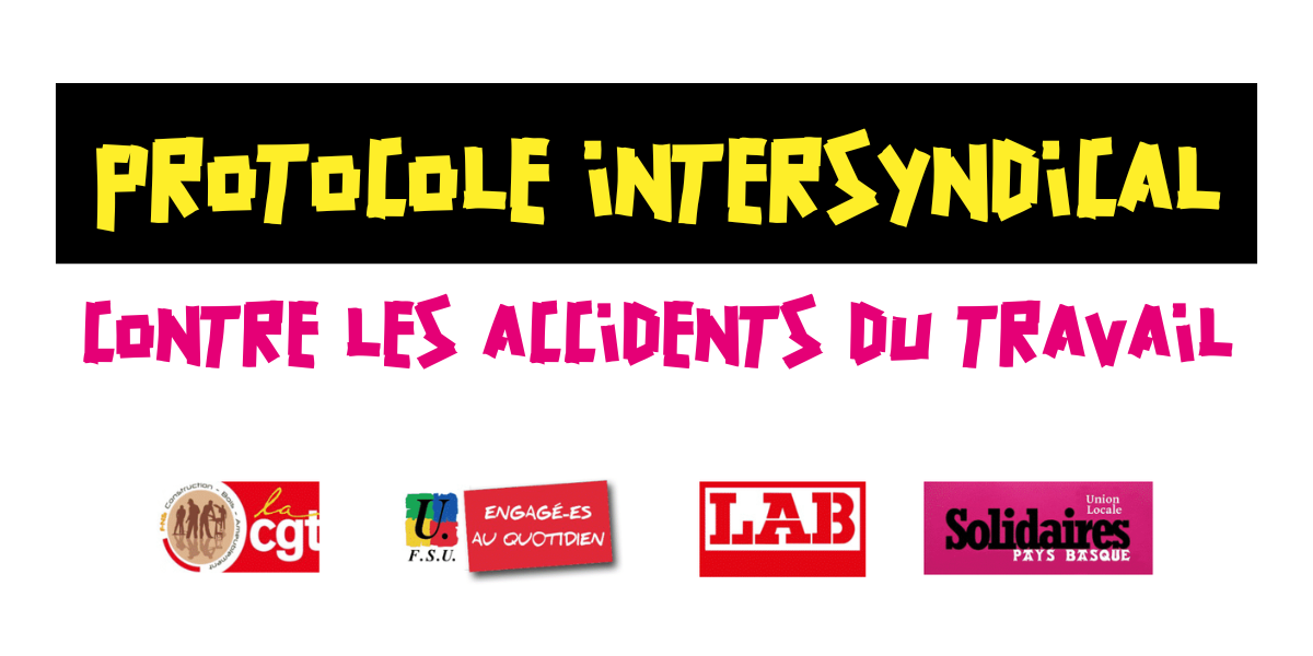 Solidaires Pays Basque, avec les organisations USCBA CGT 64, FSU 64 et LAB IEH rend aujourd'hui public la première version du protocole d’action face aux accidents du travail.