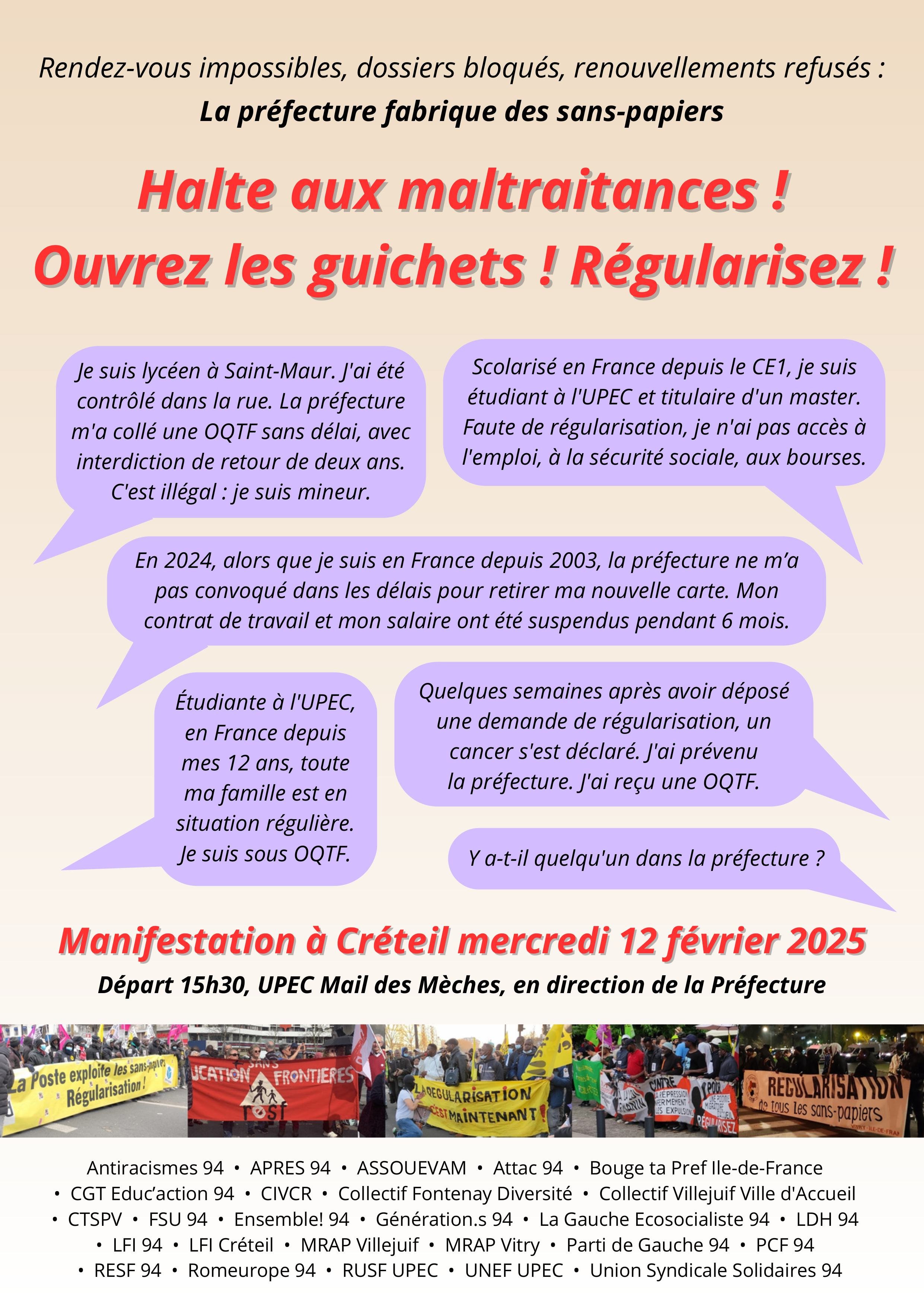 Rendez-vous impossibles, dossiers bloqués, renouvellements refusés : La préfecture fabrique des sans-papiers Halte aux maltraitances ! Ouvrez les guichets ! Régularisez !