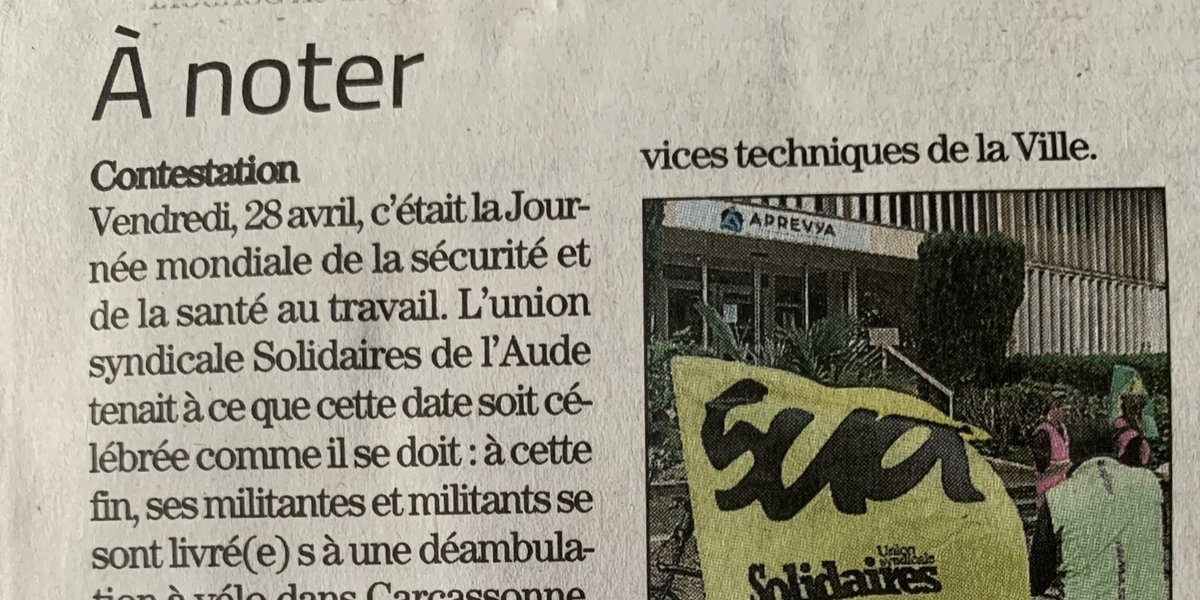 Santé au travail / SUD SOLIDAIRES à Carcassonne : la presse en parle