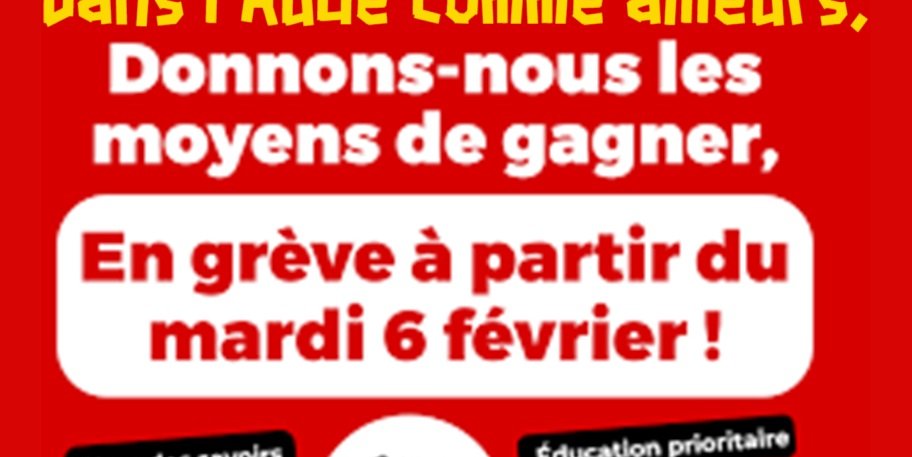 SUD Education 11 : dans l'Aude comme ailleurs, en grève à partir du 6 février ! Rassemblement unitaire à 14h30 devant la DSDEN à Carcassonne