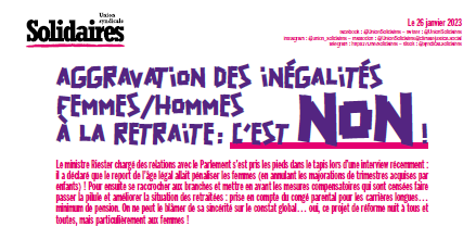 La réalité est là, persistante : selon l’INSEE (mars 2022) les femmes sont payées en moyenne 26 % de moins que les hommes dans le privé et 17 % dans la fonction publique. En 2020, la pension totale des femmes, réversion comprise, représente 71,7% de celle des hommes. C’est donc en amont qu’il faut agir, en traitant toutes les inégalités : bien des métiers féminisés sont dévalorisés, sous-rémunérés, invisibilisés (soins, métiers du social, éducation, nettoyage, commerce ...). Le gouvernement en reste aux constats en renvoyant à l’index des inégalités F/H mis en place en 2019, au lieu et place de mesures concrètes prises. Alors que l’augmentation des salaires des femmes au niveau de ceux des hommes apporterait 5,5 Mds€ au budget de la CNAV.