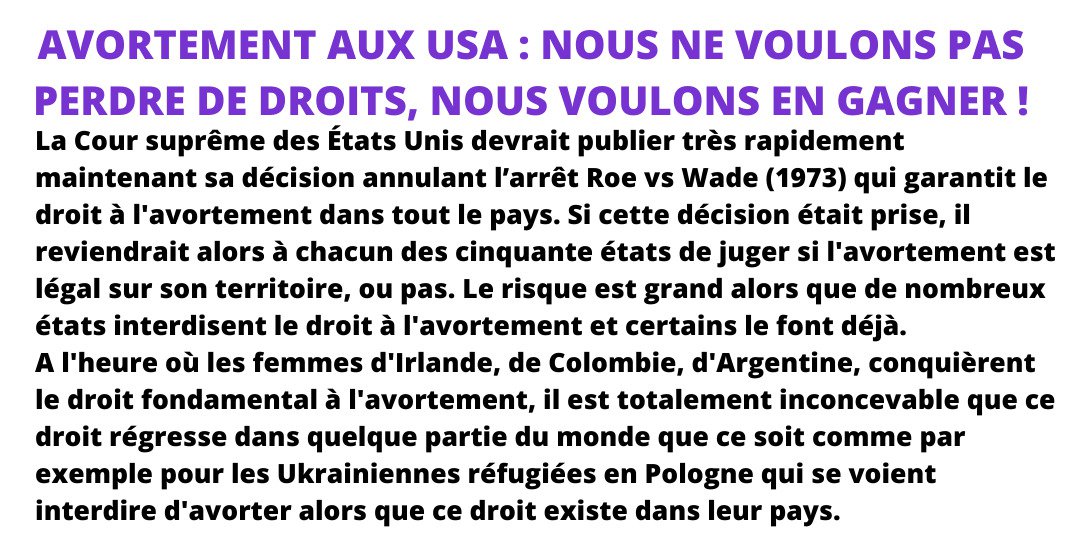 Avortement aux USA : Nous ne voulons pas perdre de droits, nous voulons en gagner !