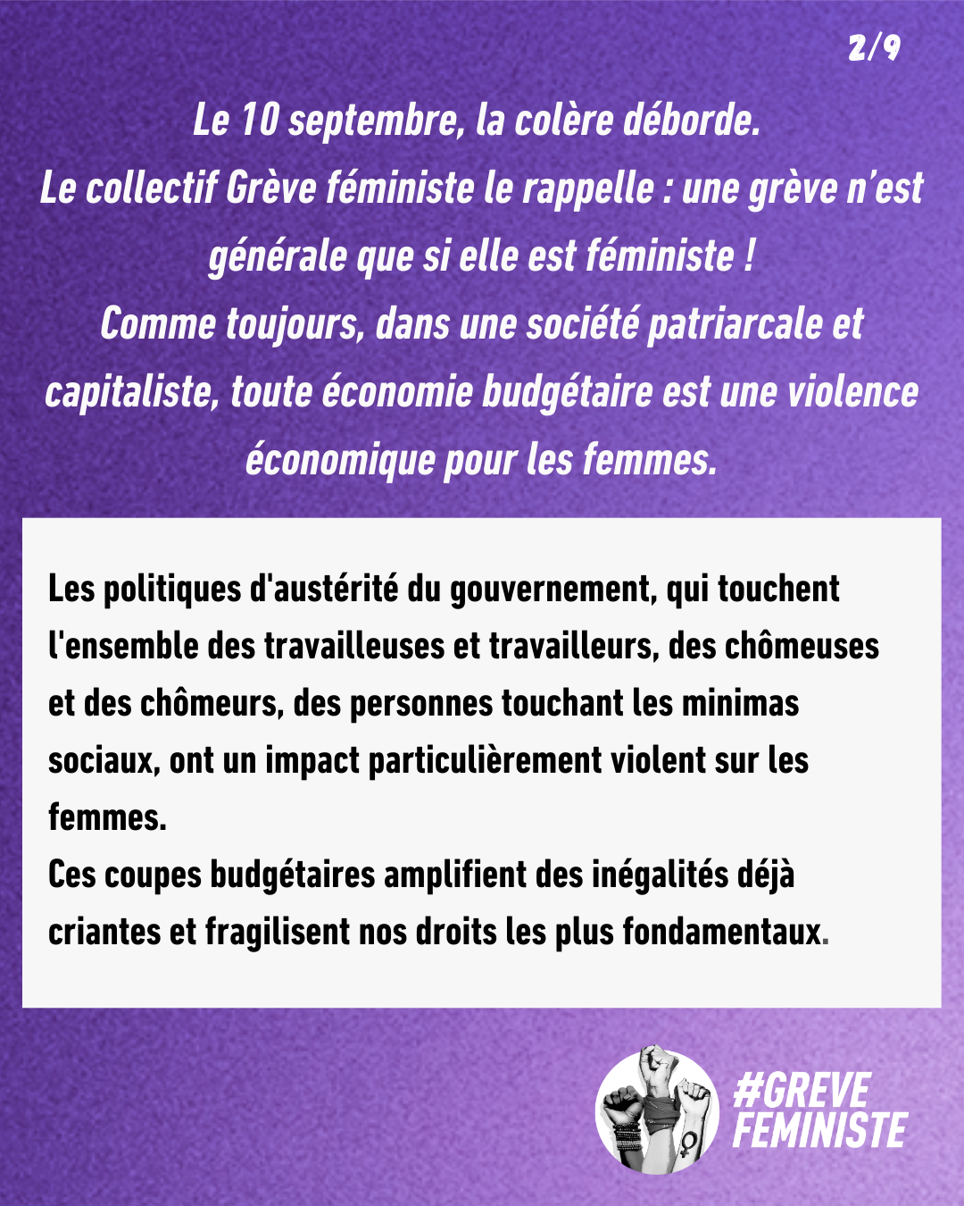 Le 10 septembre, la colère déborde. Le collectif Grève féministe le rappelle : une grève n’est générale que si elle est féministe !