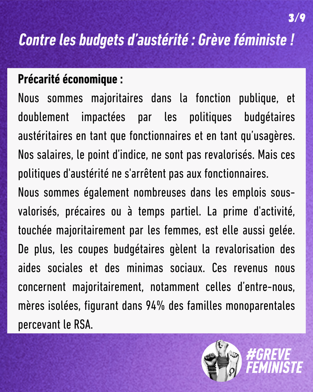 Comme toujours, dans une société patriarcale et capitaliste, toute économie budgétaire est une violence économique pour les femmes.