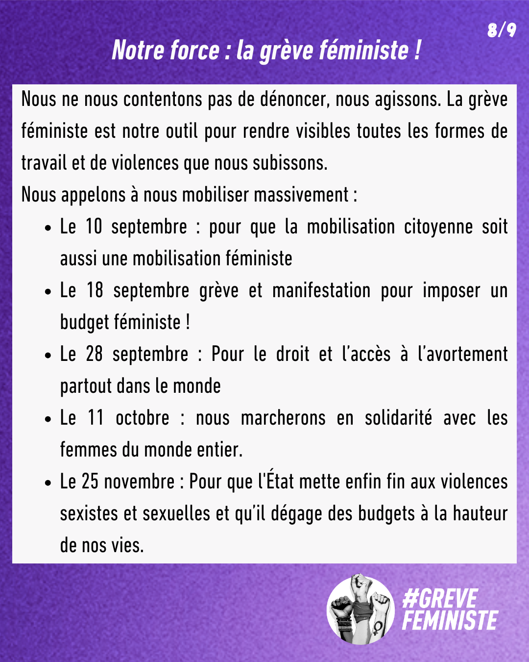• Le 10 septembre : pour que la mobilisation citoyenne soit aussi une mobilisation féministe