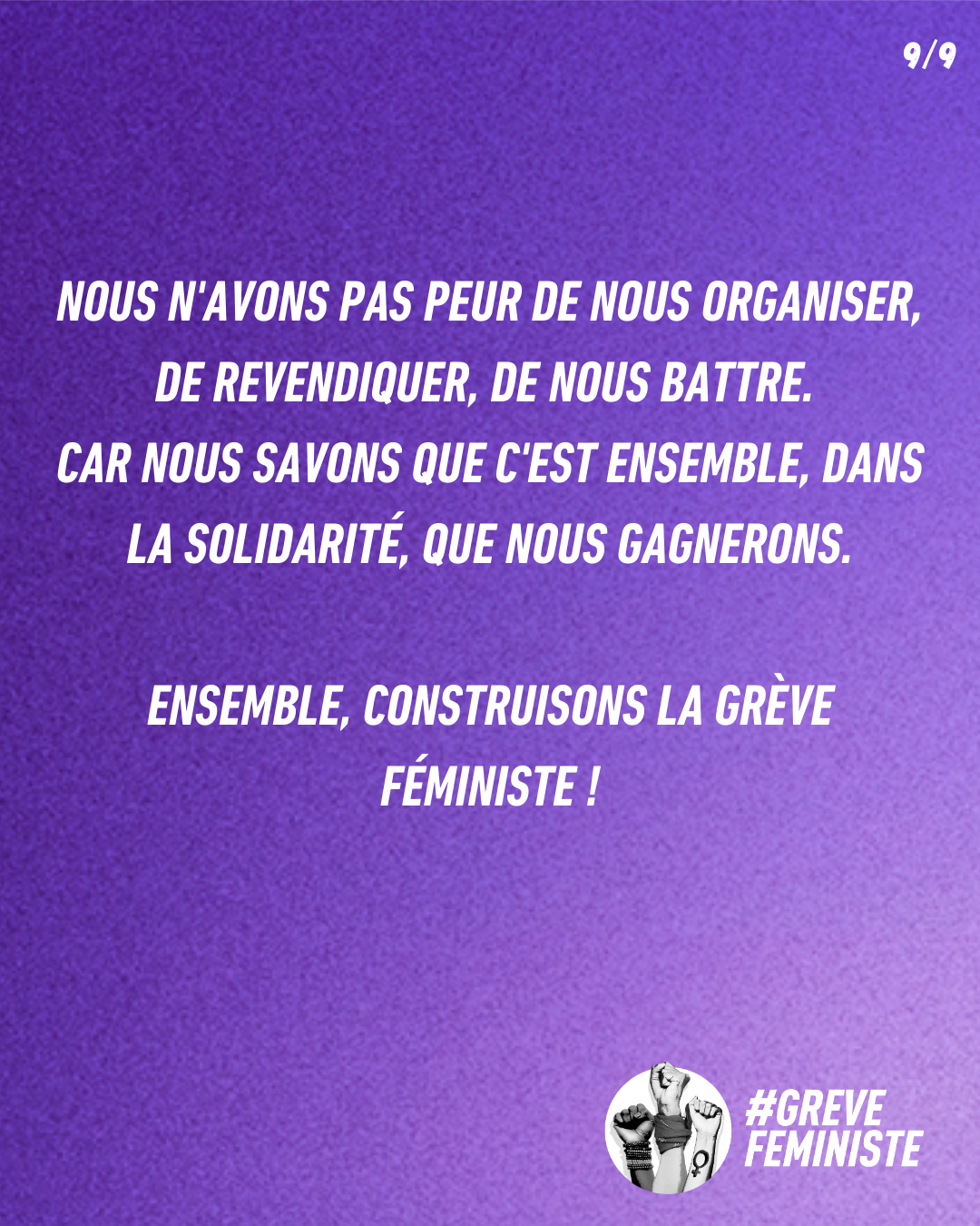 Nous n'avons pas peur de nous organiser, de revendiquer, de nous battre. Car nous savons que c'est ensemble, dans la solidarité, que nous gagnerons.