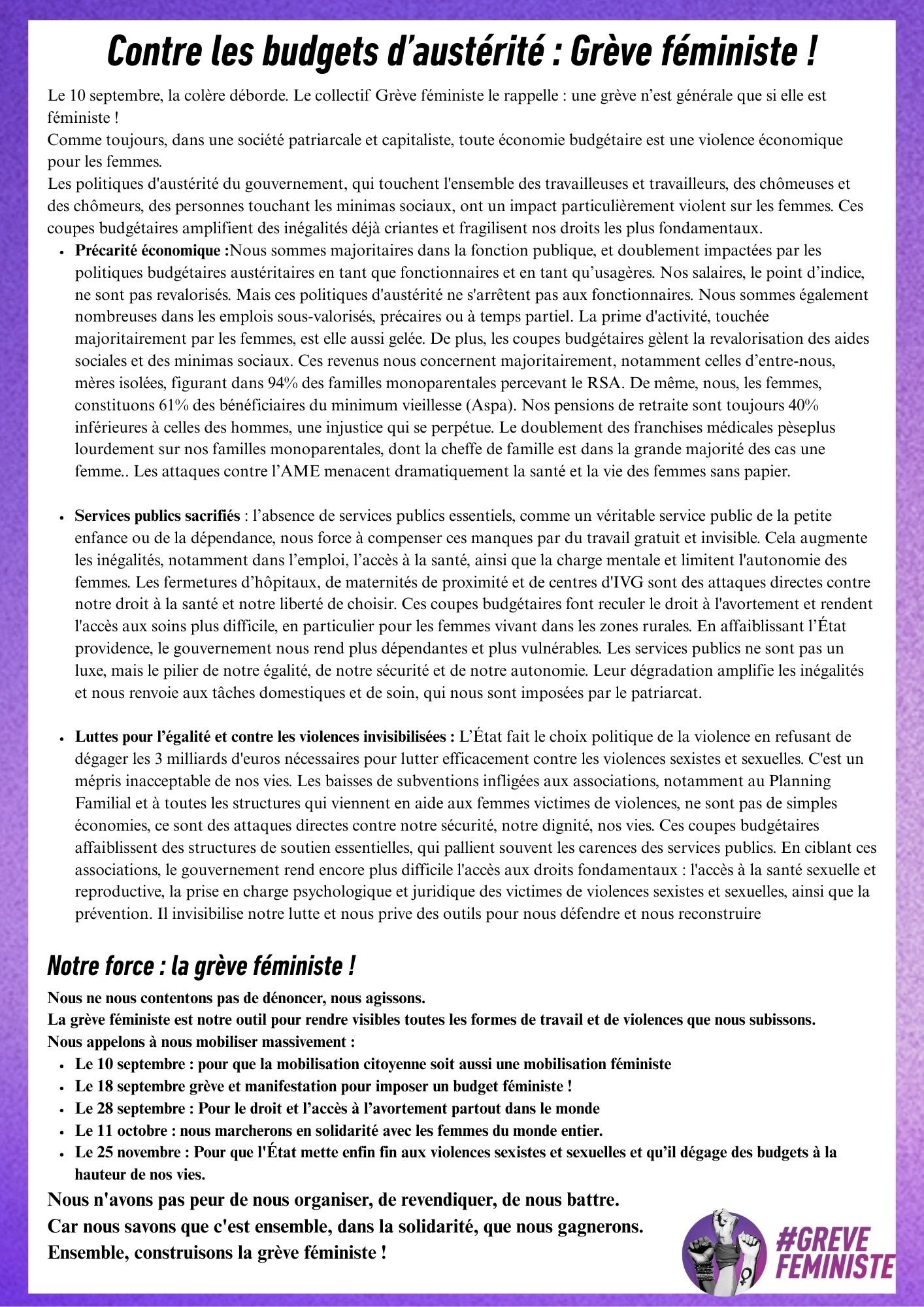 Contre les budgets d’austérité : Grève féministe ! (tract du collectif Grève Féministe)