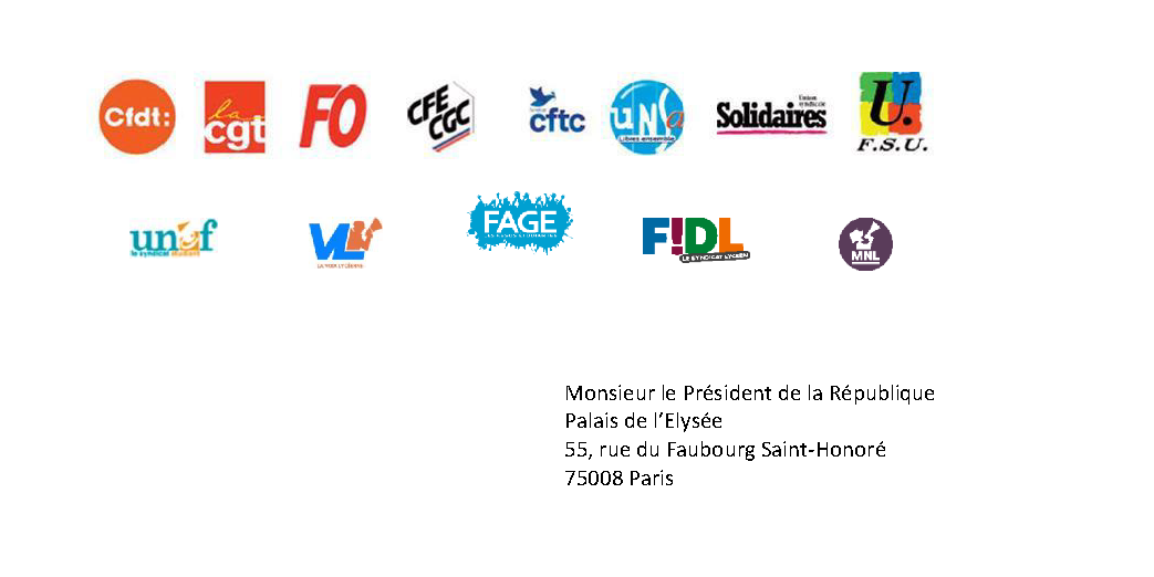Courrier intersyndical au président de la république