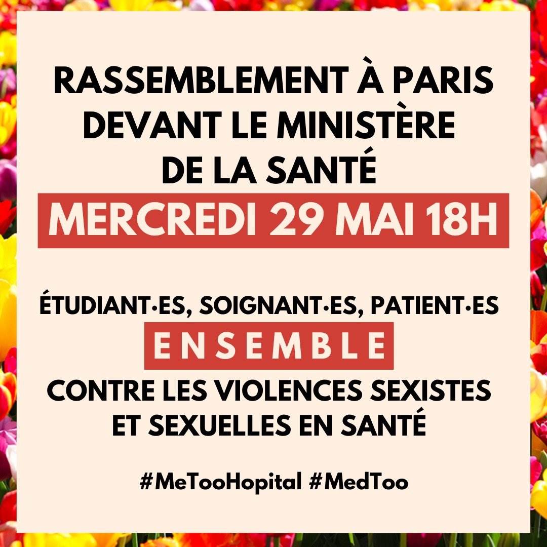 Muni·es de témoignages anonymes de victimes, nous mettrons en scène l’alliance de professionnel· vêtu·es de blouses blanches, d’étudiant·es et de patient·es dans le combat contre les violences sexistes et sexuelles, et nous lèverons un poing violet pour symboliser notre colère et notre détermination.