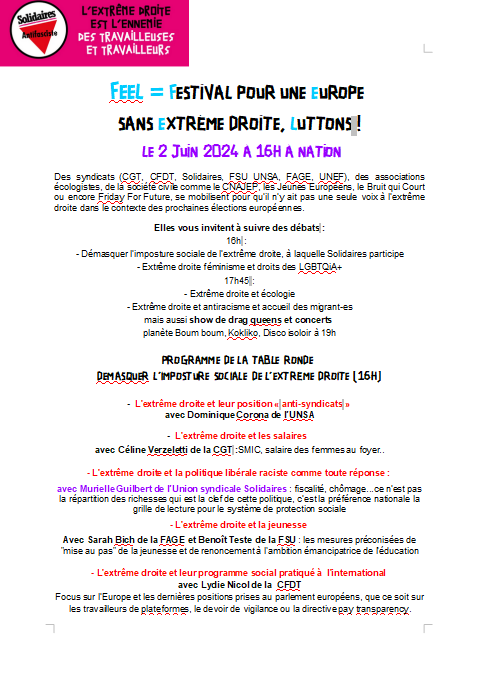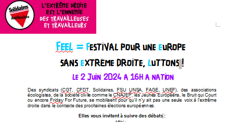 FEEL = Festival pour une Europe sans Extrême Droite, LUTTONS !