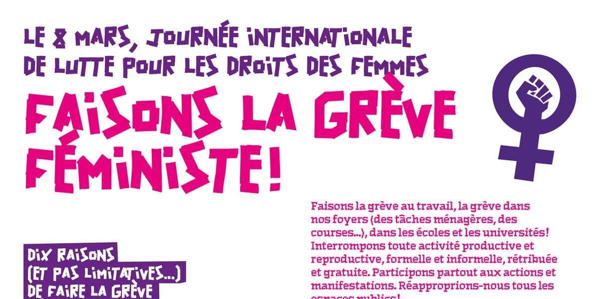 Le 8 mars, journée internationale de lutte pour les droits des femmes, faisons la grève féministe !
