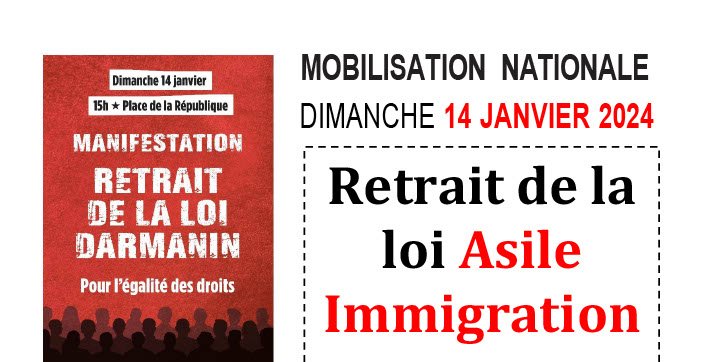 - À manifester massivement sur tout le territoire le dimanche 14 janvier, pour empêcher que cette loi soit promulguée, combattre le racisme, la xénophobie et défendre une politique migratoire d’accueil et de solidarité.
