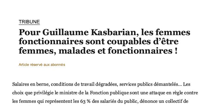 Tribune parue dans Libé : Pour Guillaume Kasbarian, les femmes fonctionnaires sont coupables d’être femmes, malades et fonctionnaires !