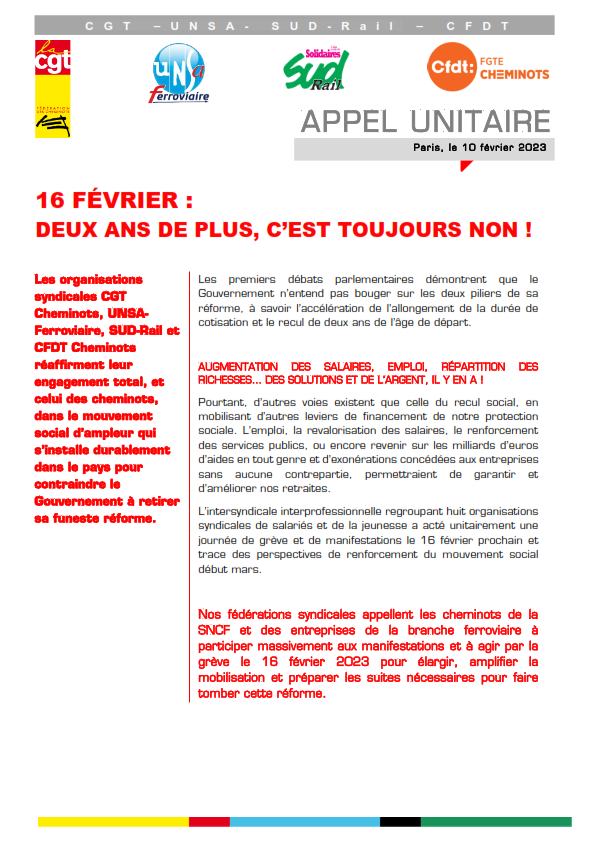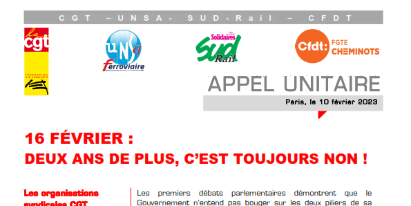 16 février : appel unitaire à la SNCF