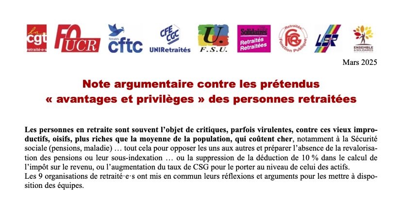 Les 9 organisations de retraité·e·s ont mis en commun leurs réflexions et arguments pour les mettre à disposition des équipes. Voici le document issu de ce travail.