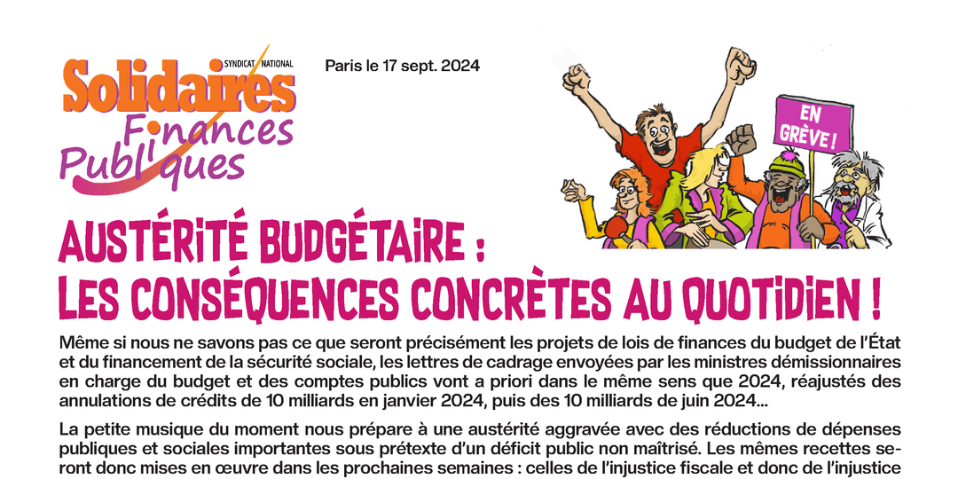 Pour Solidaires Finances Publiques l’austérité n’est pas une fatalité, d’autres choix doivent s’imposer, en arrêtant les coupes budgétaires et en instaurant une fiscalité plus juste, plus progressive, plus redistributive générant des recettes fiscales supplémentaires.