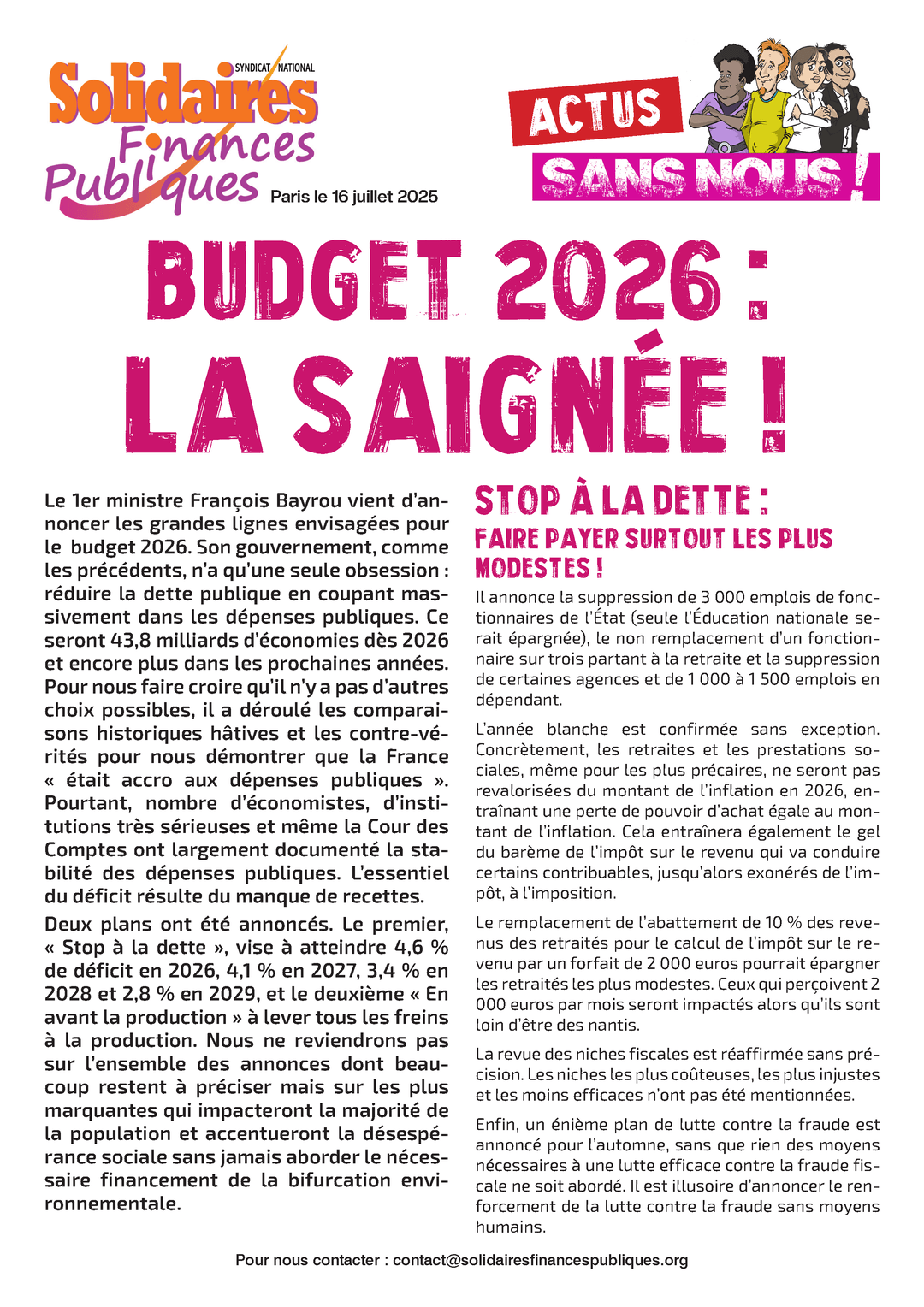 Budget 2026 : La saignée !